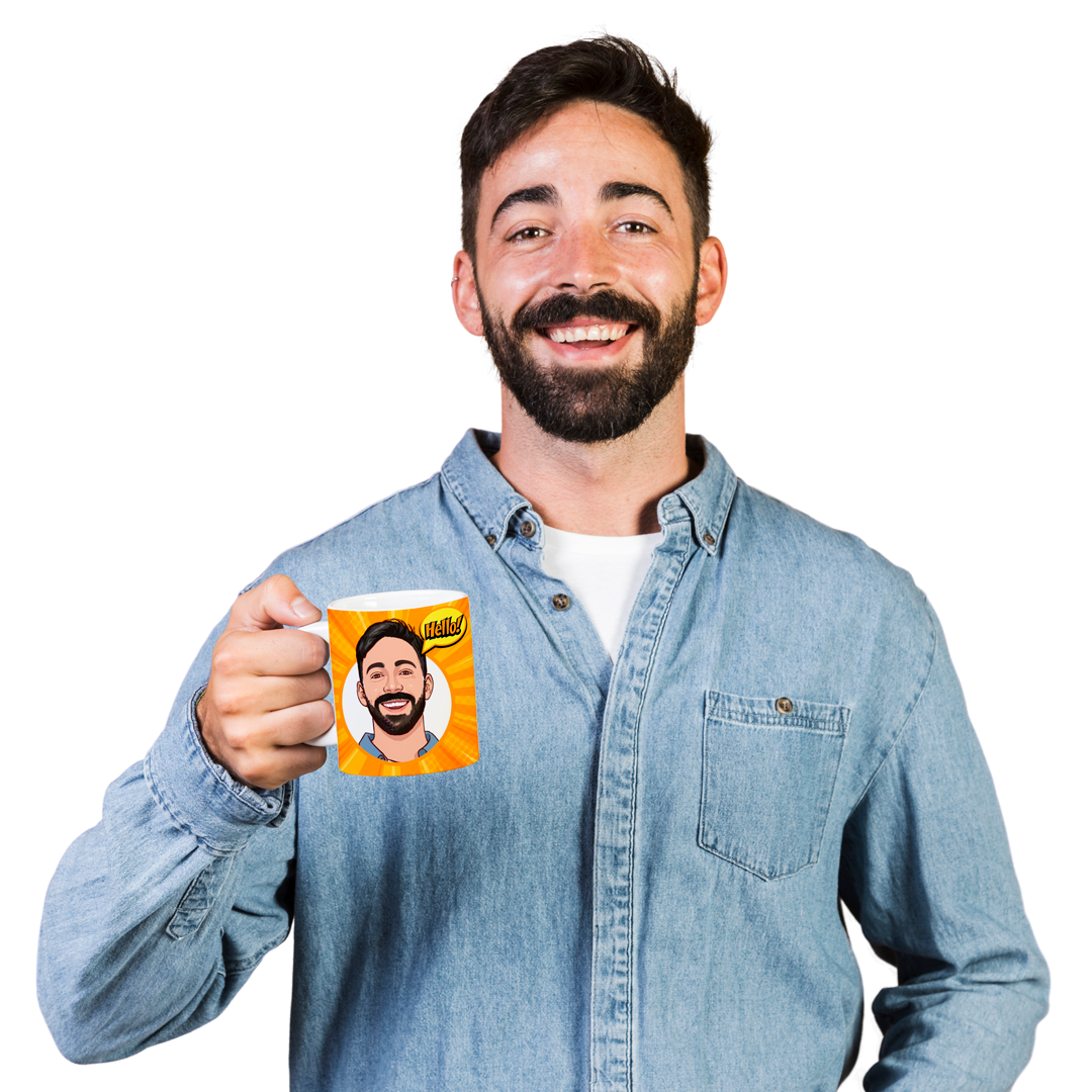 Personalize com caricatura, sendo desenho, caricatura realista ou cartoon e ainda acrescente o tema que quiser, letras, frases, logos...