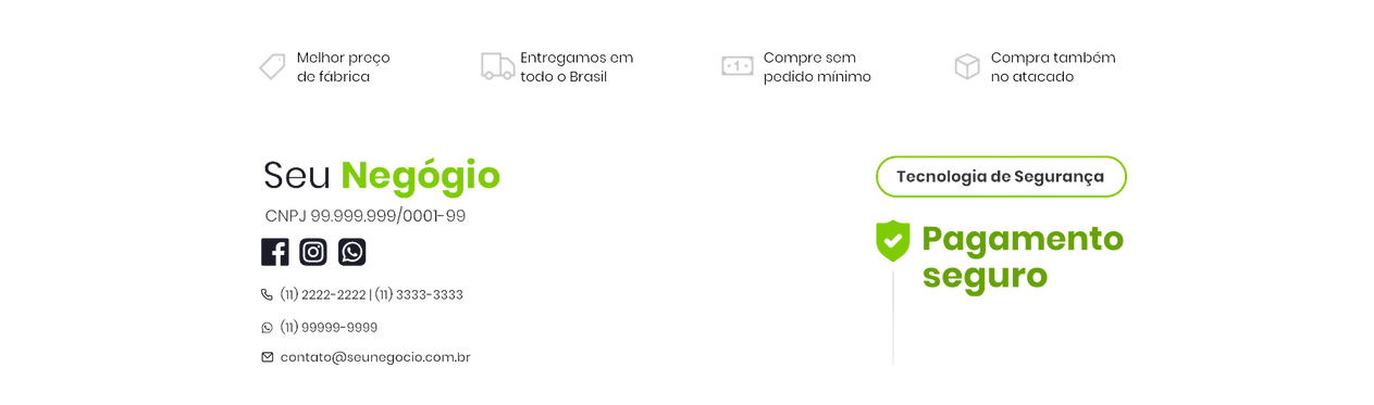 Parcelamos todos os produtos em até 3x sem juros no cartão de crédito. Temos a máquina de cartão da Ton e o link de pagamento.